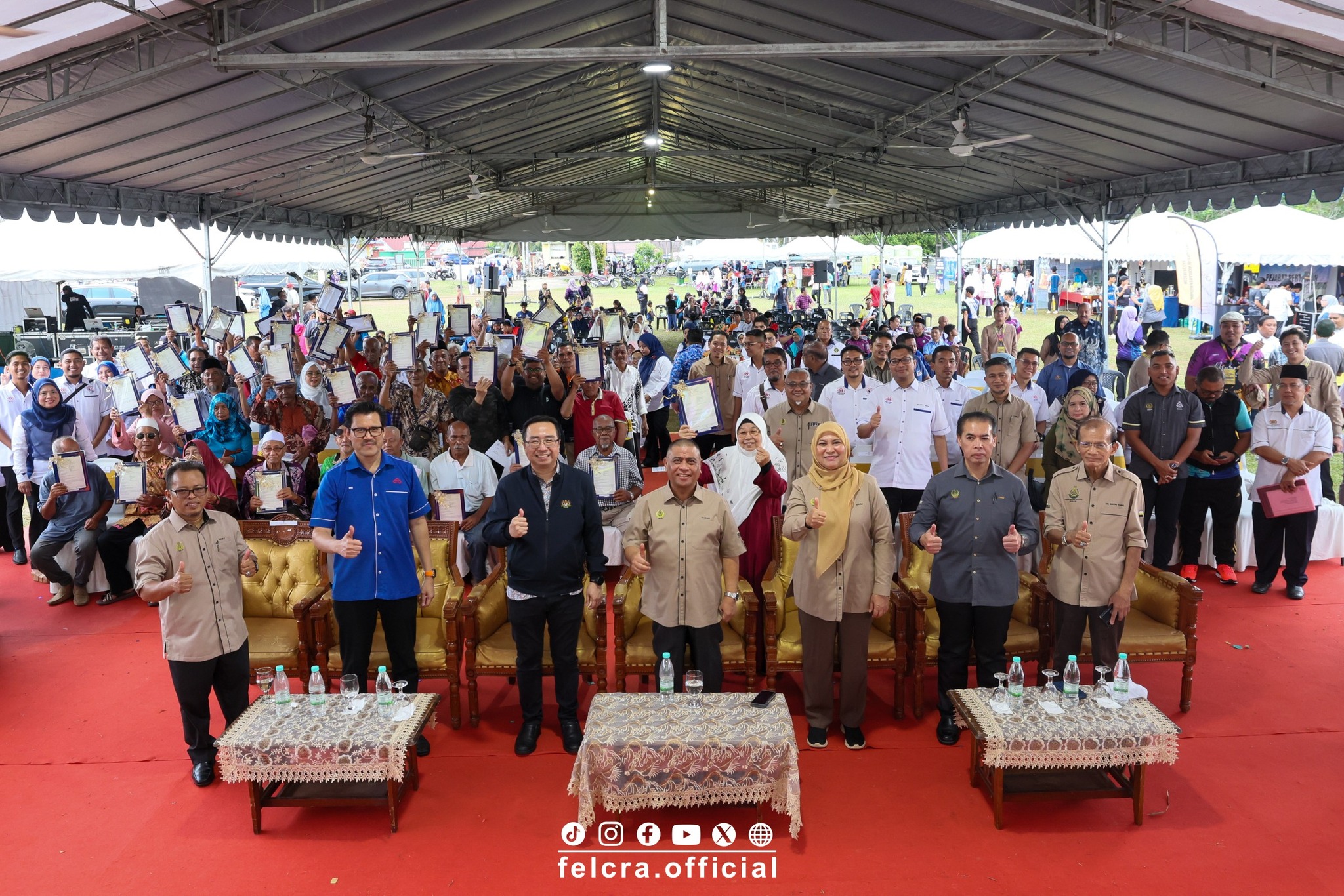 Majlis bersejarah ini turut diiringi oleh YBrs. Encik Mohamed Ismi bin Abdul Majid, Caretaker Ketua Pegawai Eksekutif FELCRA Berhad, sebagai tanda sokongan dan komitmen berterusan FELCRA Berhad dalam memperkasa pemilikan aset serta kesejahteraan peserta.